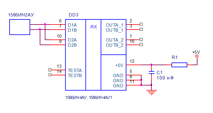 2. Микросхемы 1586ИН4АУ, 4АУ1 стойкие к импульсу вплоть до максимального уровня воздействия во всем температурном диапазоне до +125 ºС. Токоограничивающий резистор не требуется.